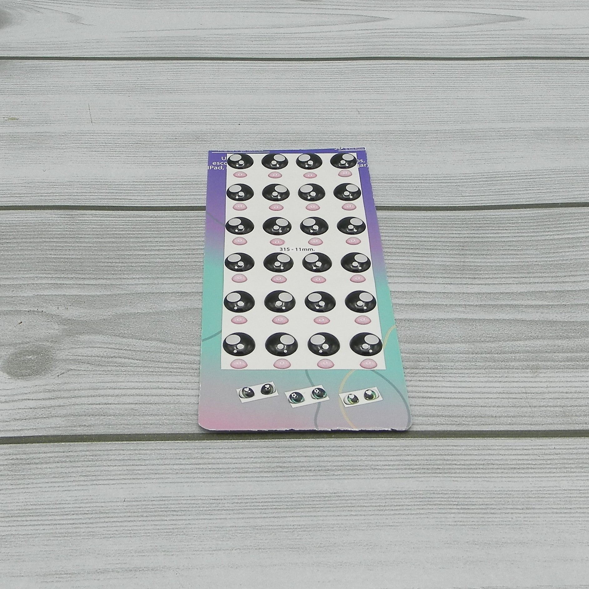 3D resin adhesive eyes measuring 11mm wide, each eye, pack of 12 pairs. Gogolandia