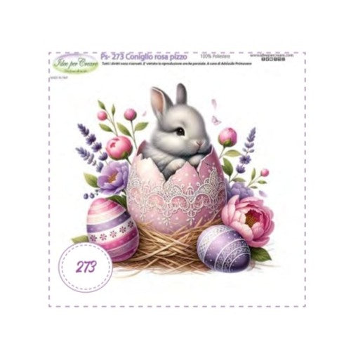 Pannello Mini 25x25 Coniglio Rosa con Pizzo. Pannolenci stampato idee per creare.