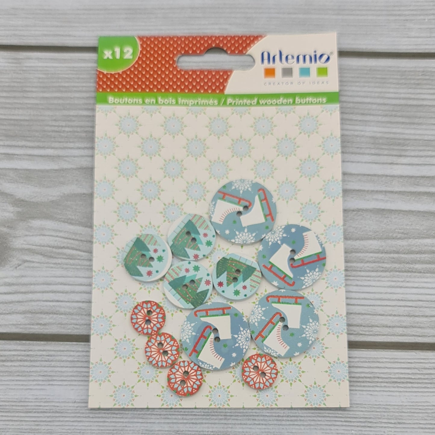 Bottoncini decorativi in legno Natale 12 pezzi. Artemio