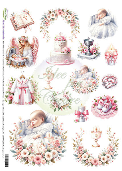 Carta di riso Battesimo Lei stampata per decoupage nel formato 29,7x42 cm. Idee Per Creare
