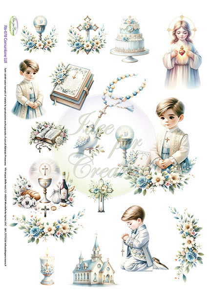 Carta di riso Comunione Lui stampata per decoupage nel formato 29,7x42 cm. Idee Per Creare