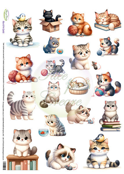 Carta di riso Gattini stampata per decoupage nel formato 29,7x42 cm. Idee Per Creare