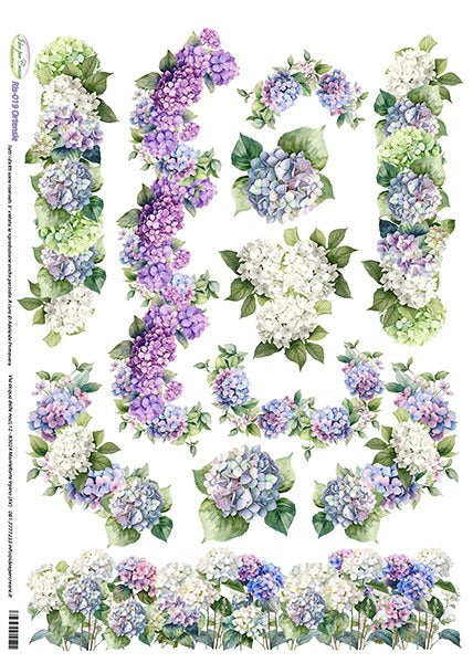 Carta di riso Ortensie stampata per decoupage nel formato 29,7x42 cm. Idee Per Creare