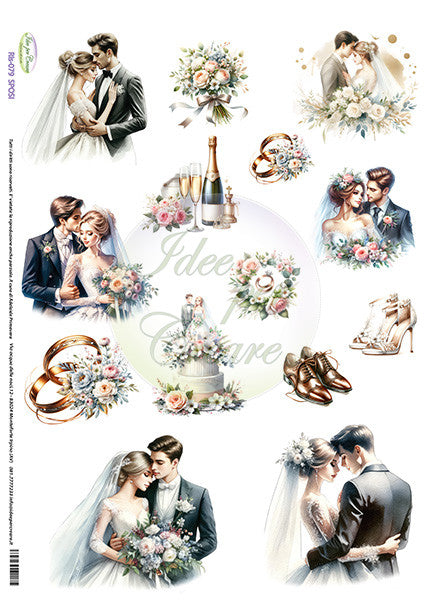 Carta di riso Sposi stampata per decoupage nel formato 29,7x42 cm. Idee Per Creare