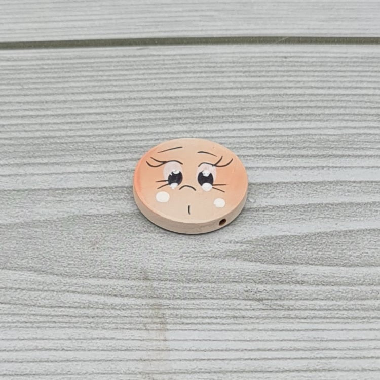 Faccina disegnata a mano su pasticca di legno del diametro di 2,5cm. Gogolandia