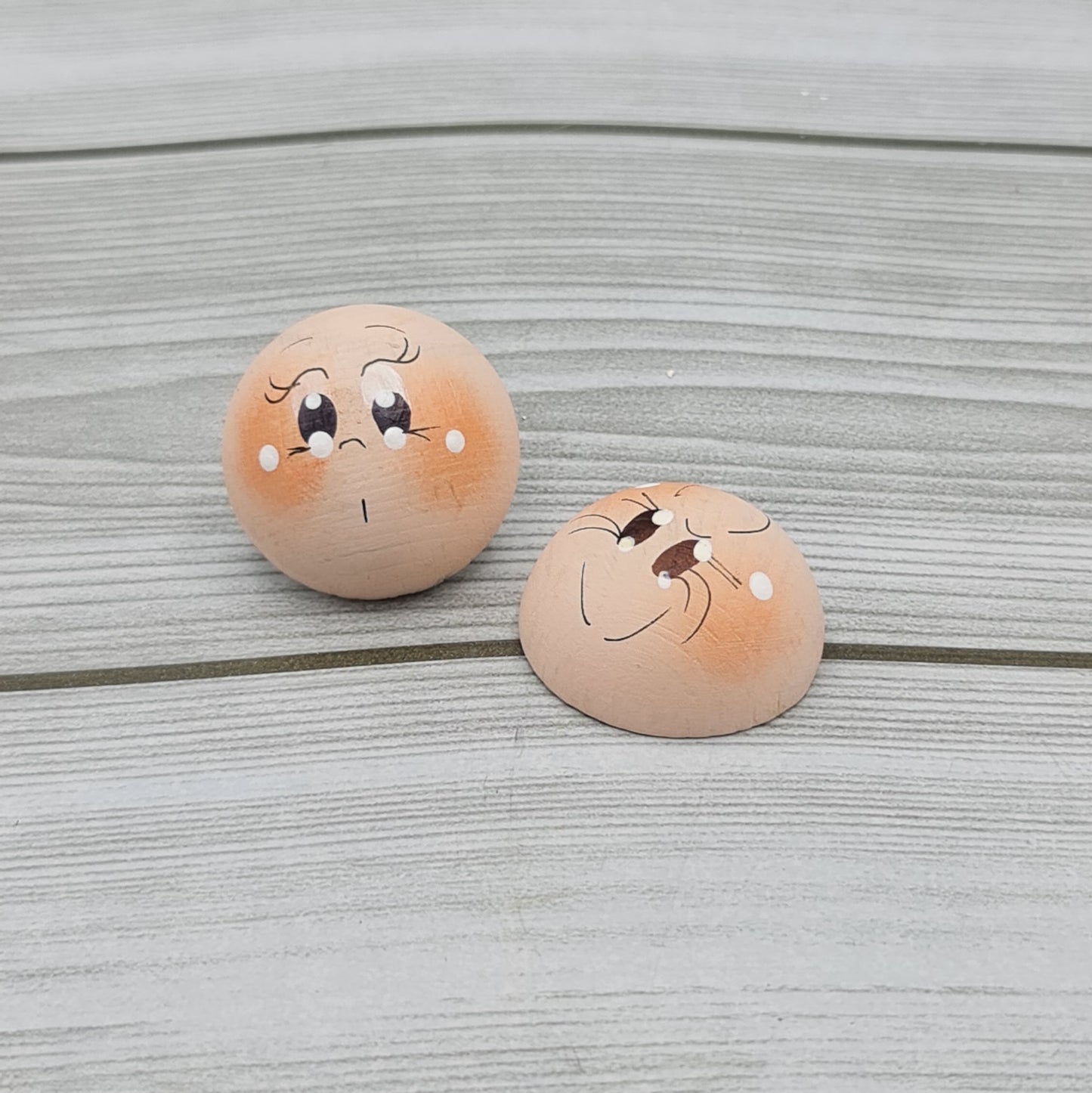 Faccina disegnata a mano su mezza sfera di legno del diametro di 3,5 cm. Gogolandia