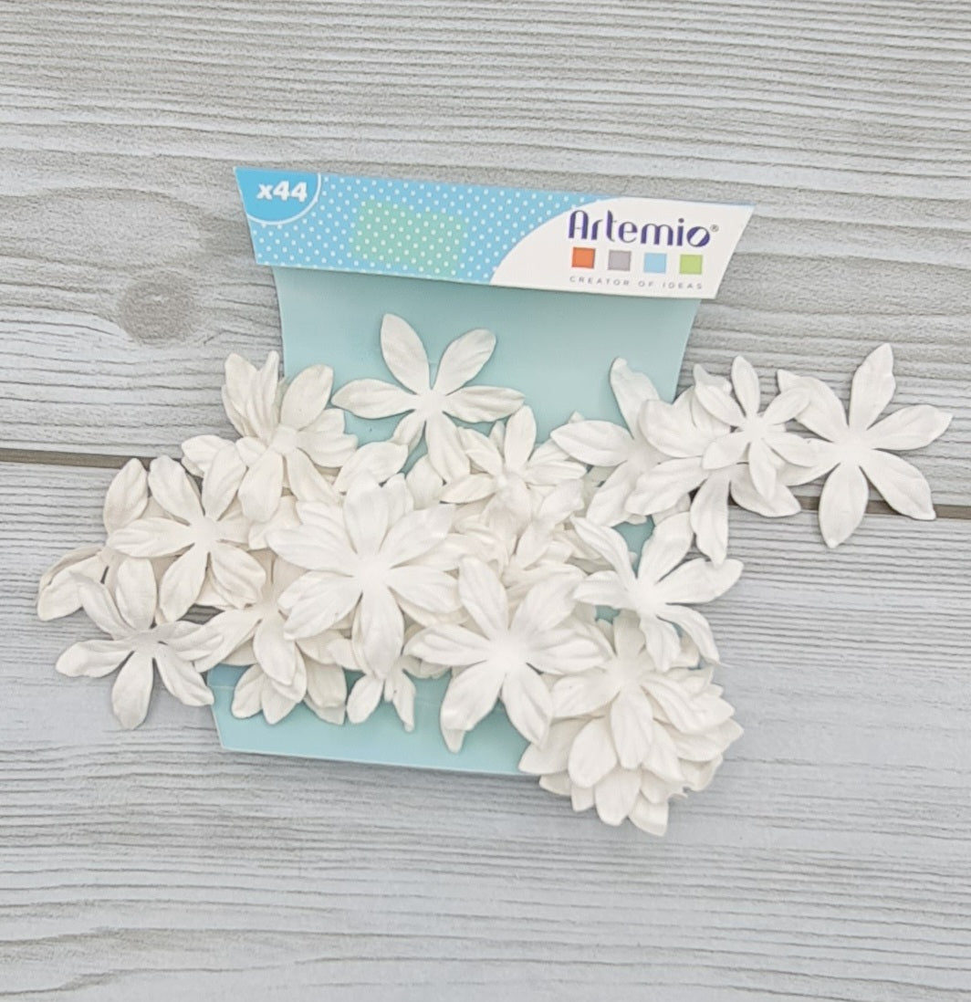 44 Decorazioni a Fiore bianchi da colorare con pennarelli Tombow o inchiostri a lenta asciugatura busta assortita come da foto .