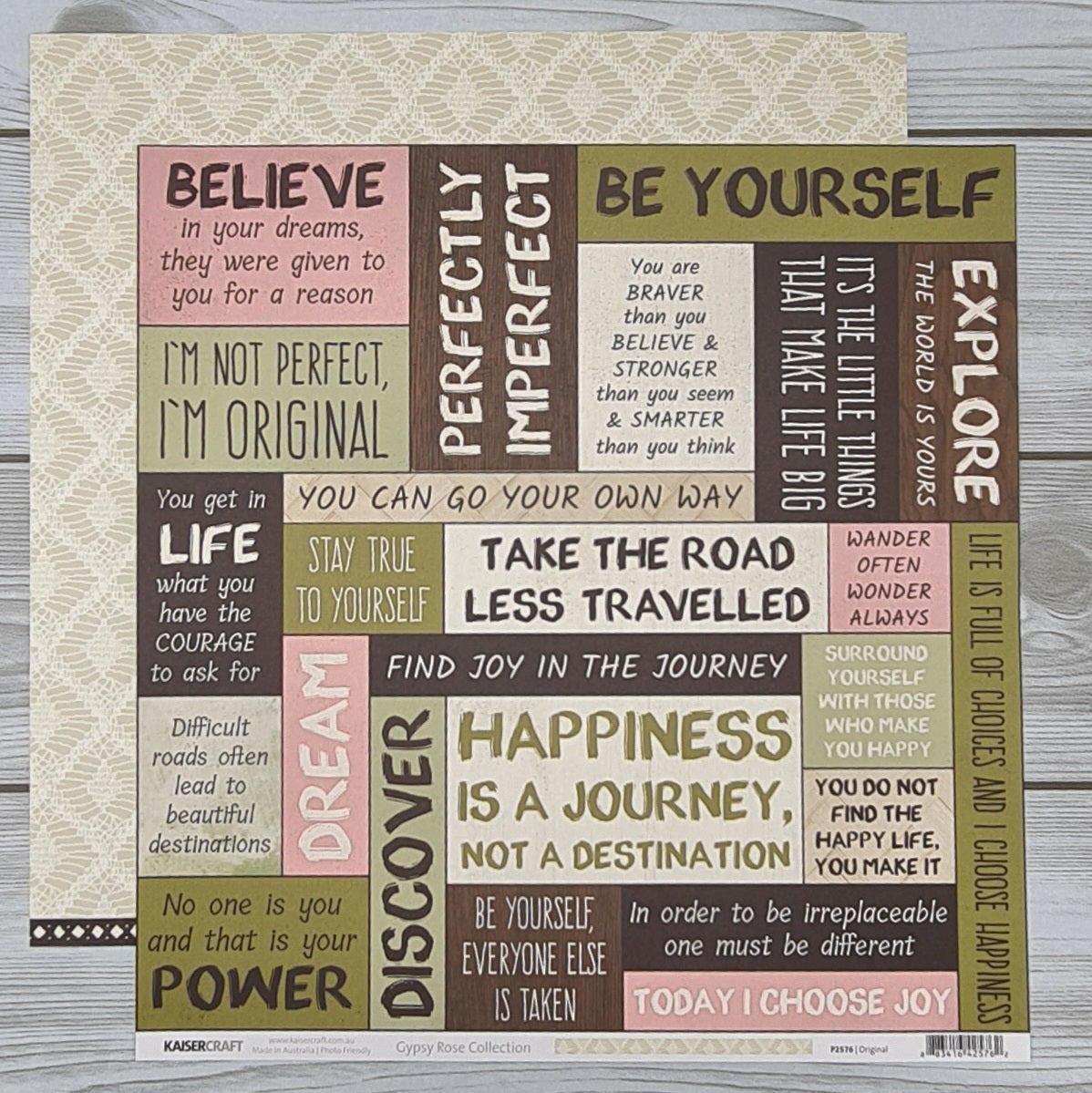 Foglio carta Scrapbooking Kaisercraft Gipsy Rose Collection. Formato 30,5x30,5 cm ,Double face Acid Free.