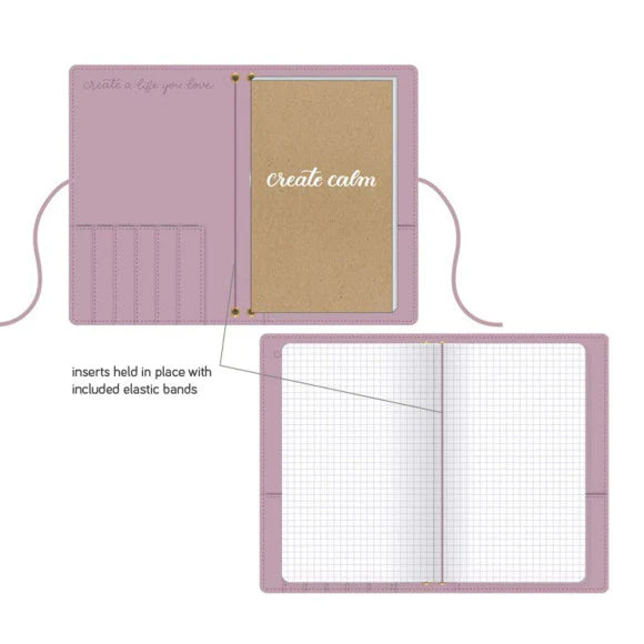 Midori in ecopelle contenente un quadernino pratica a puntini e tasche per contenere 6 penne da calligrafia Formato 13x20 cm. Kelly Creates