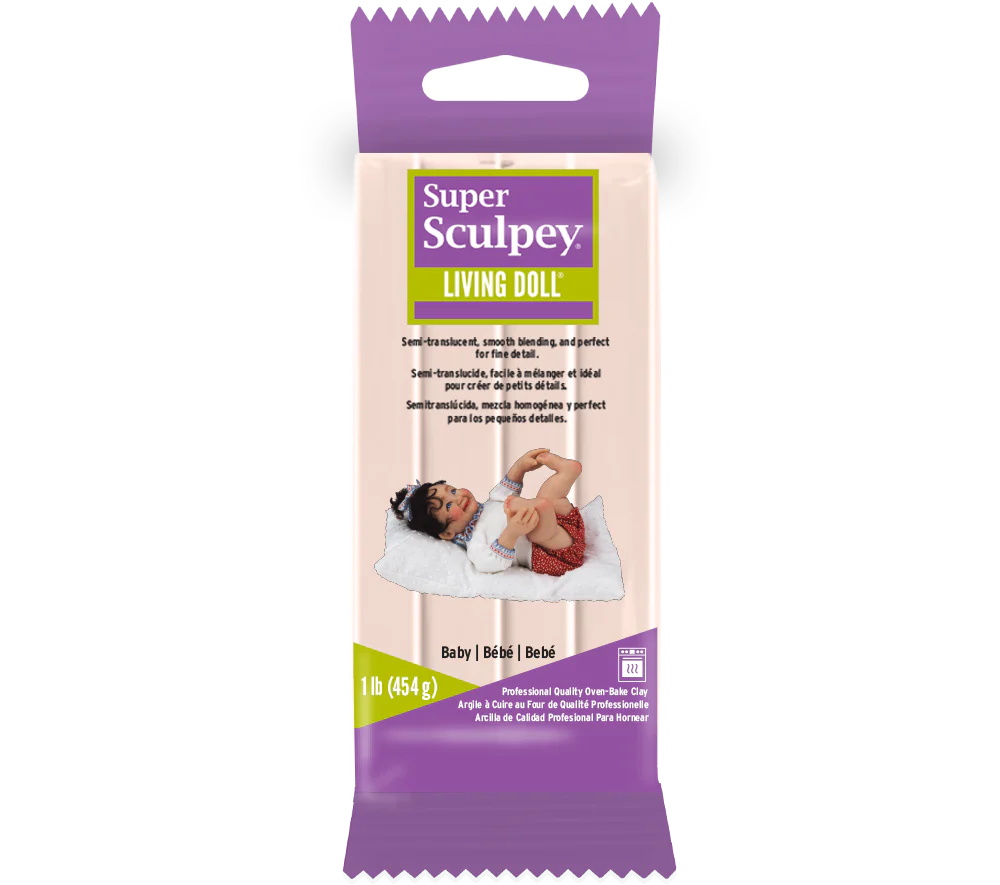Super Sculpey Living Doll Bebè, non si asciuga all'aria. Semitrasparente. Rimane morbida e malleabile fino alla cottura. Dopo la cottura le creazioni possono essere dipinte, levigate, scolpite e forate.