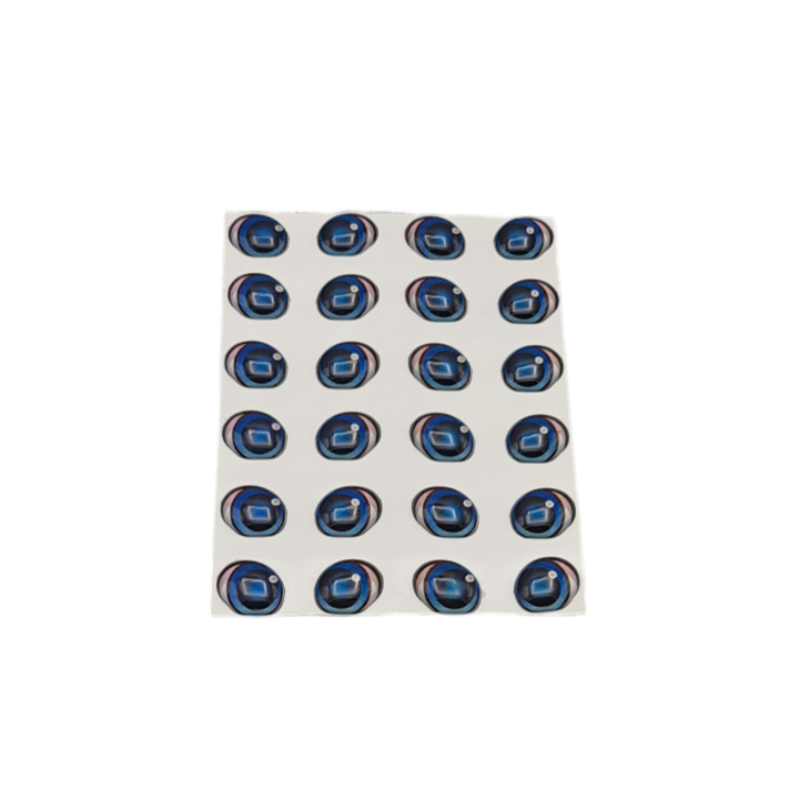 Occhi adesivi resinati 3D misura occhio larghezza 11mm alto 9mm. Confezione da 12 paia. Gogolandia