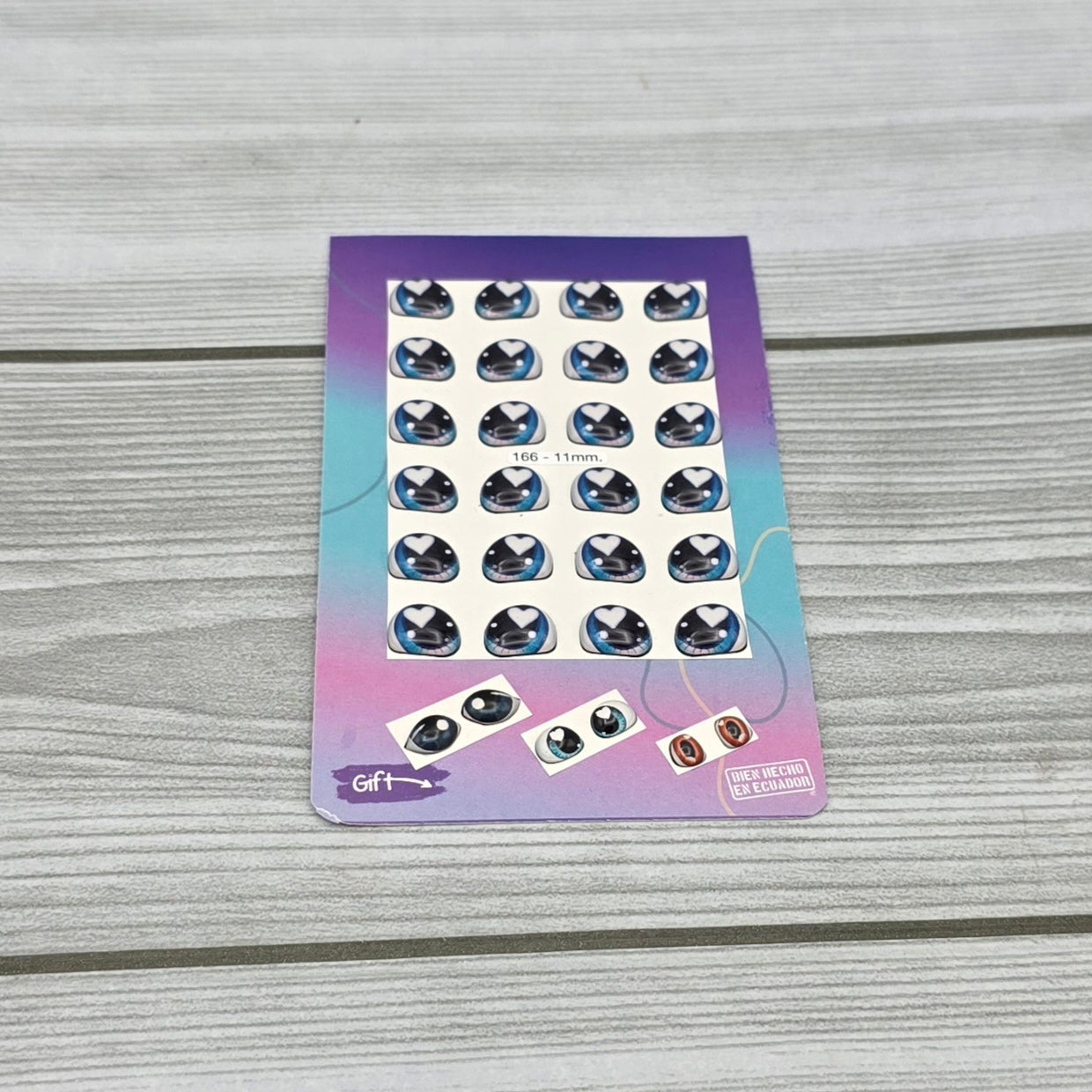Occhi adesivi resinati 3D misura occhio larghezza 11mm alto 10,1mm. Confezione da 12 paia. Gogolandia
