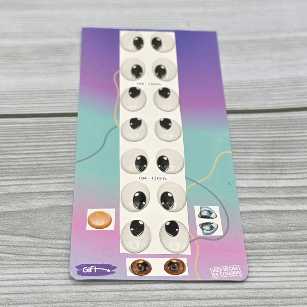 Occhi adesivi resinati 3D misura occhio larghezza 13mm. Confezione da 7 paia. Gogolandia