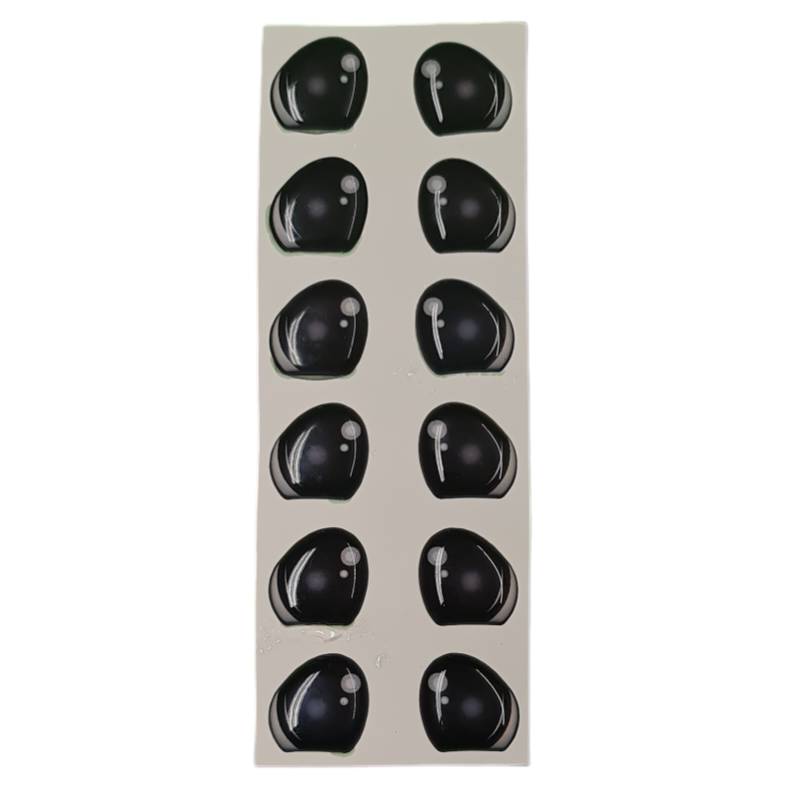 Occhi adesivi resinati 3D misura occhio larghezza 18mm alto 17,7mm. Confezione da 6 paia. Gogolandia