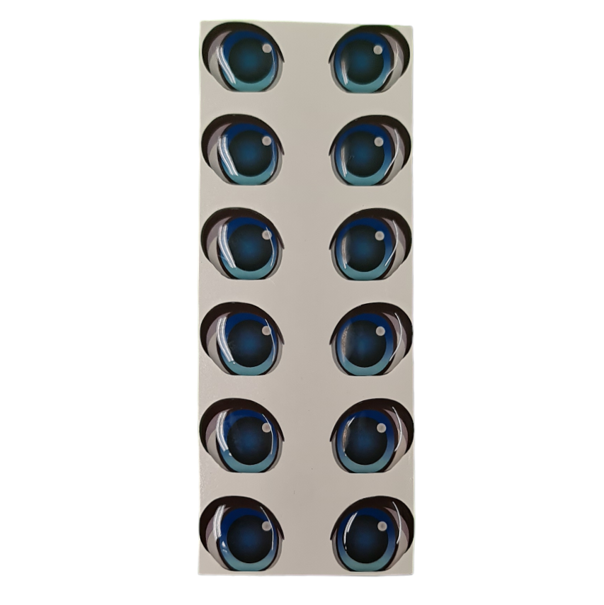 Occhi adesivi resinati 3D misura occhio larghezza 20mm alto 18mm. Confezione da 6 paia. Gogolandia