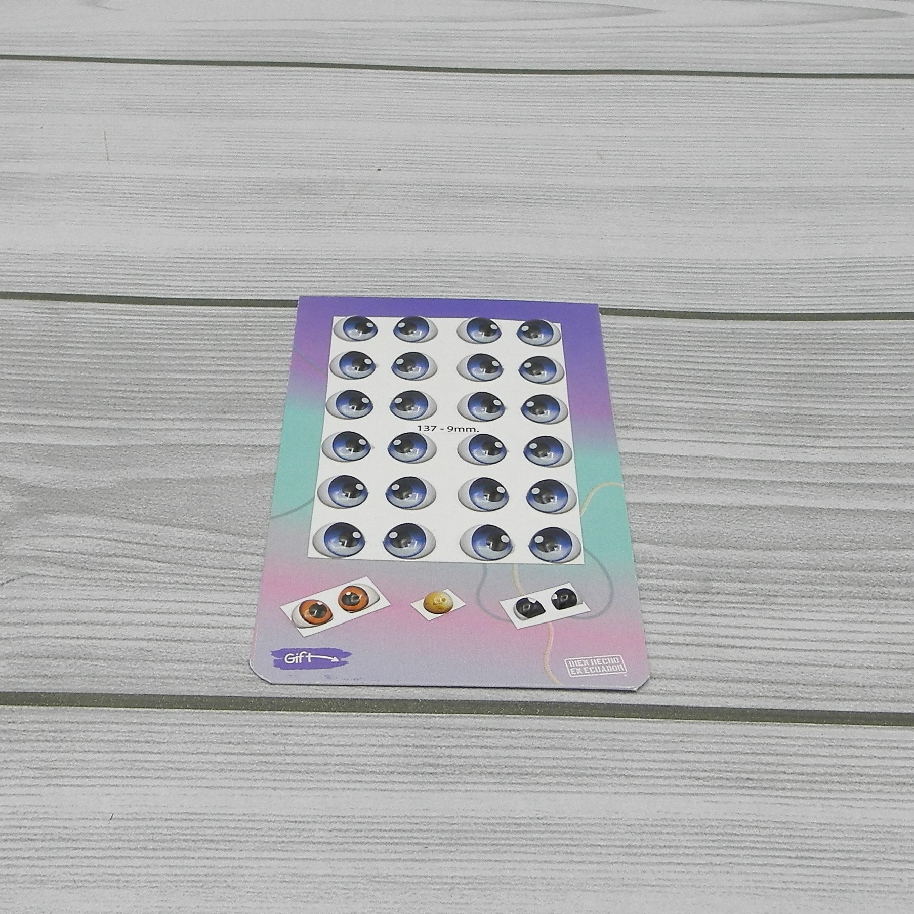 Occhi adesivi resinati 3D misura larghezza 9mm e altezza 9mm ogni occhio, confezione da 12 paia. Gogolandia