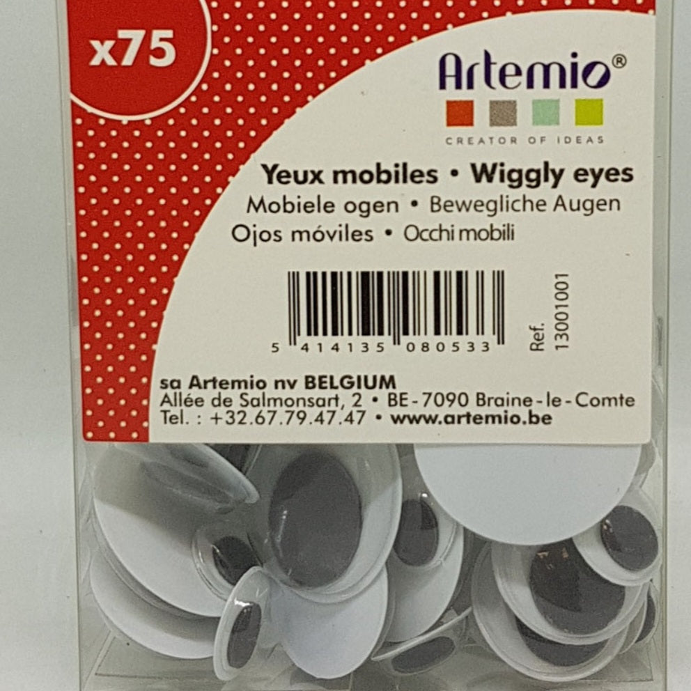 Occhi mobili assortiti da 7, 10, 15 e 20 mm in confezione da 75pz. Artemio