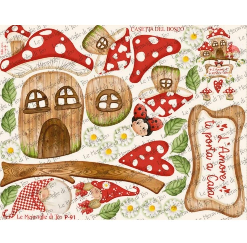 Pannolenci stampato Casetta Nel Bosco. Dimensione 50x40cm. Le Meraviglie di Teo