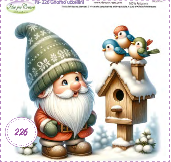 Pannello Mini 25x25 Gnomo Uccellini. Pannolenci stampato Idee per Creare. PS-226