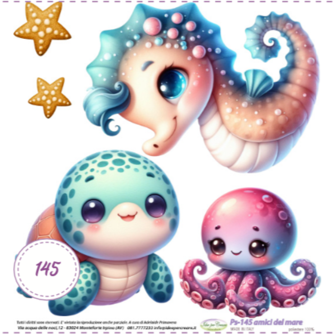 Pannello Mini 25x25 Amici del Mare. Pannolenci stampato idee per creare.