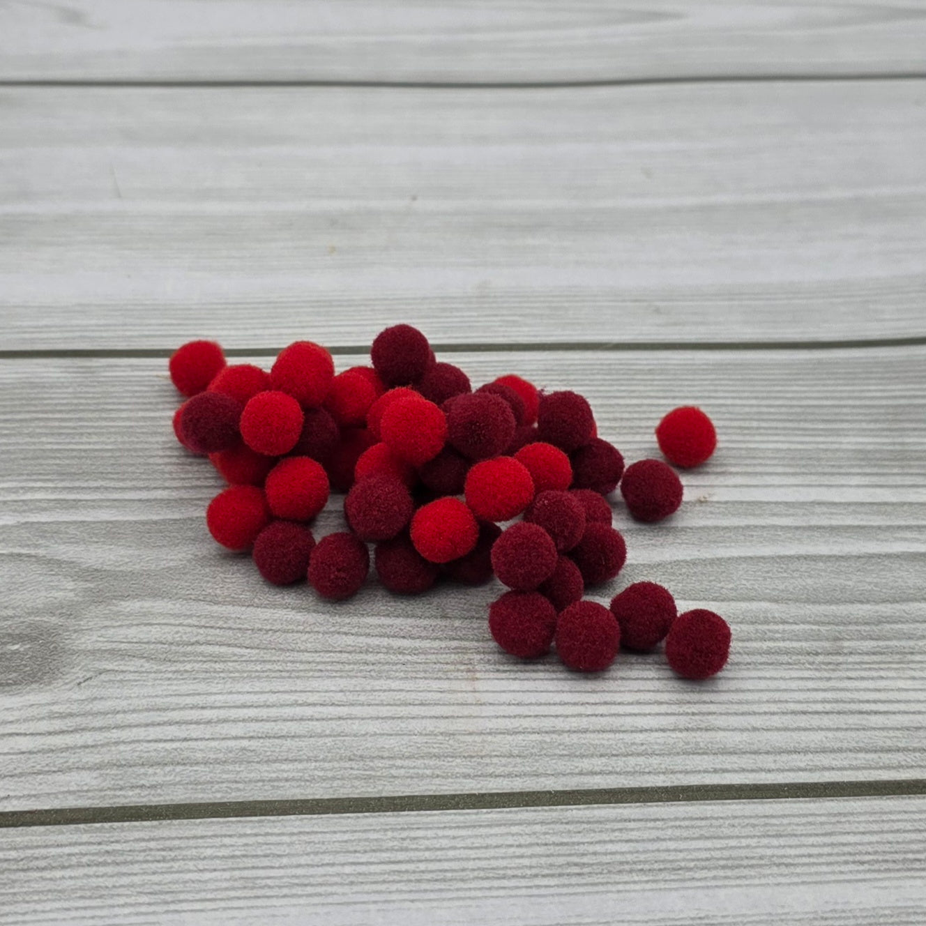 Confezione da 60 Pon Pon da 1,5cm colori Rosso e Bordeaux. Artemio