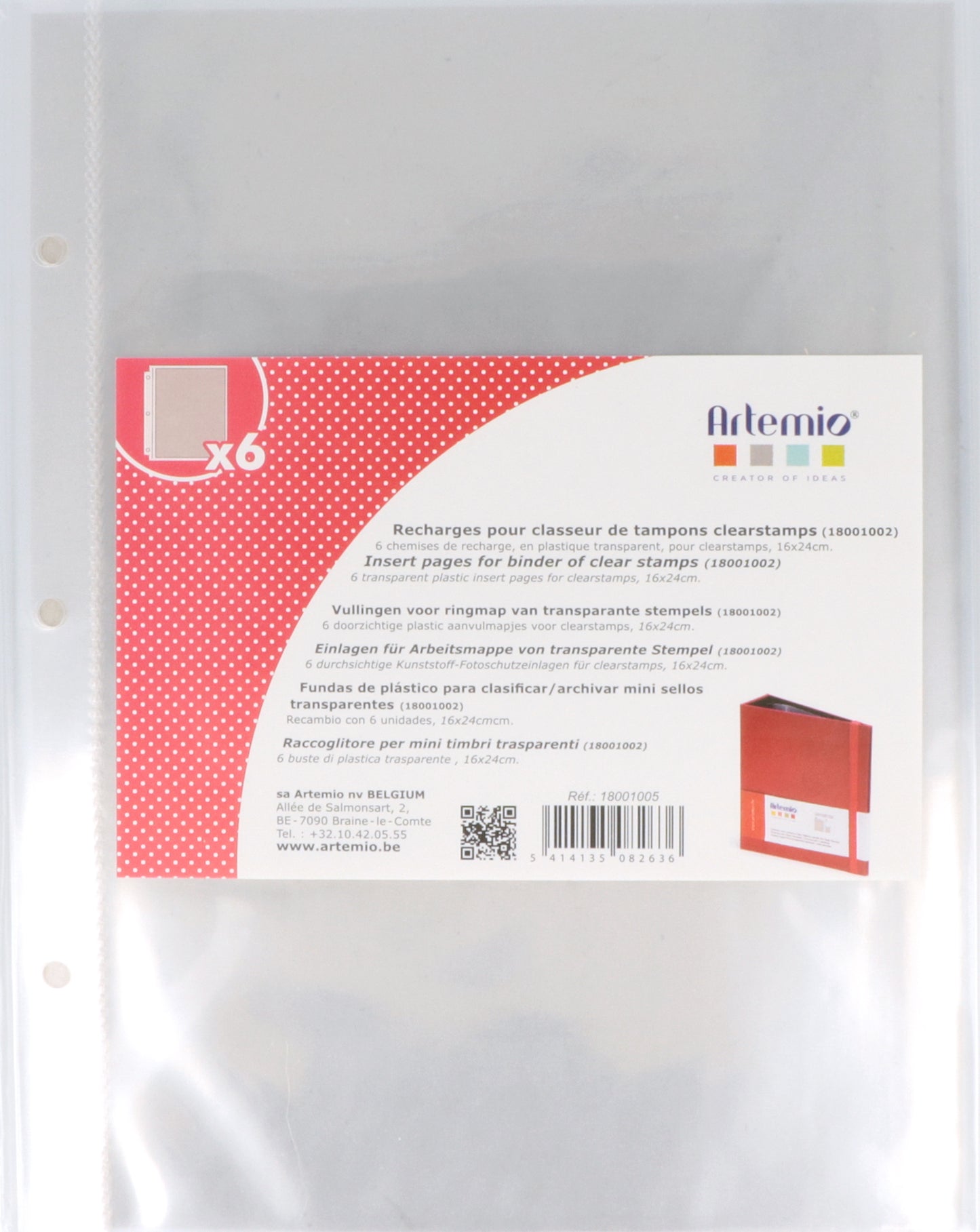 Ricambi 6 fogli in plastica trasparenti per contenere timbri e fustelle (16x24cm). Artemio