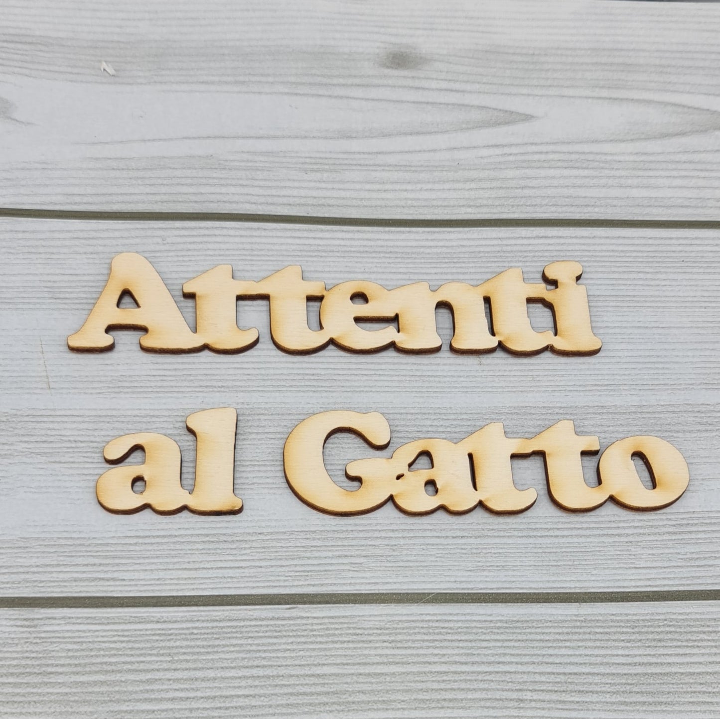 Scritta Attenti al gatto in legno, Misura 28x3 cm. Sagomiamo