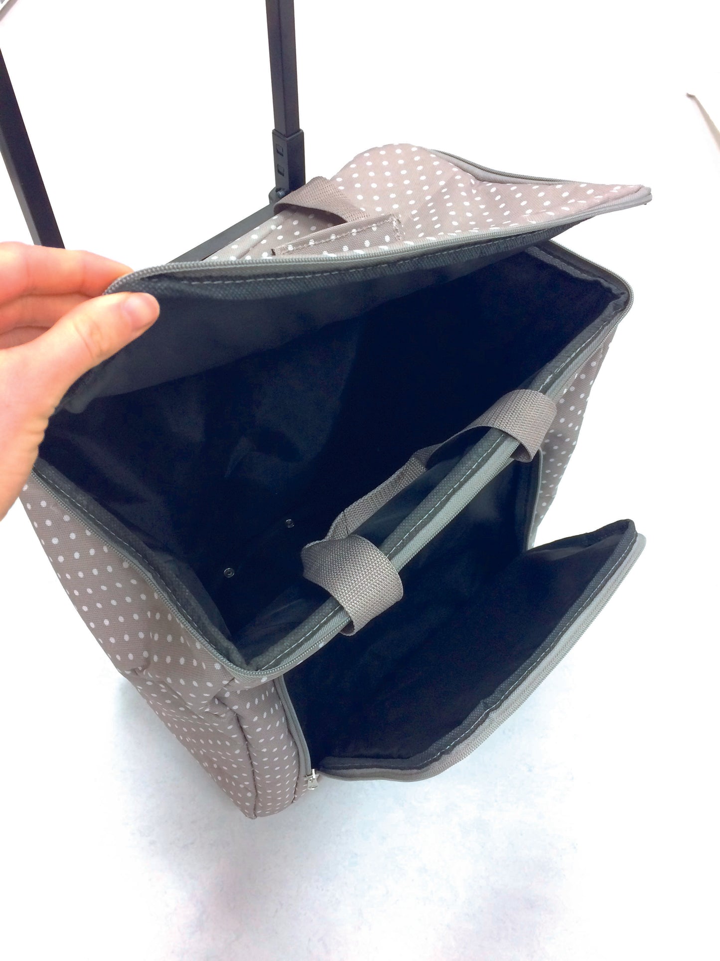Trolley da Scrapbooking dimensioni 42x25x37cm. Contiene un impugnatura estensibile, doppie ruote in nylon, una doppia impugnatura da trasporto e una tasca frontale con 5 porta stilo elastici. Artemio